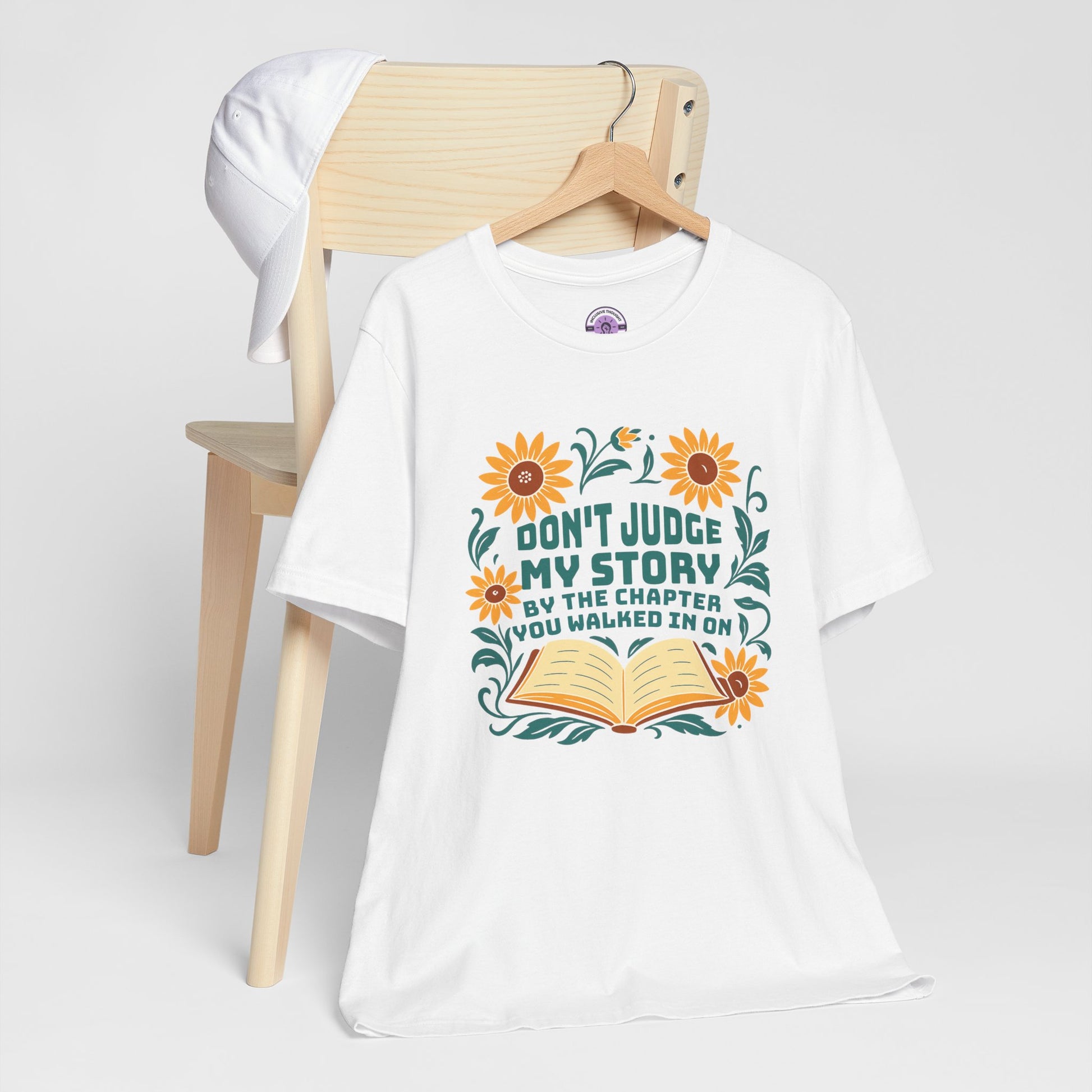 This sunflower-themed tee is a radiant reminder that your story can’t be reduced to someone else's first impression. Featuring rich golden blooms and a bold open-book graphic, this design speaks to survivors, storytellers, and anyone still in the thick of their healing.