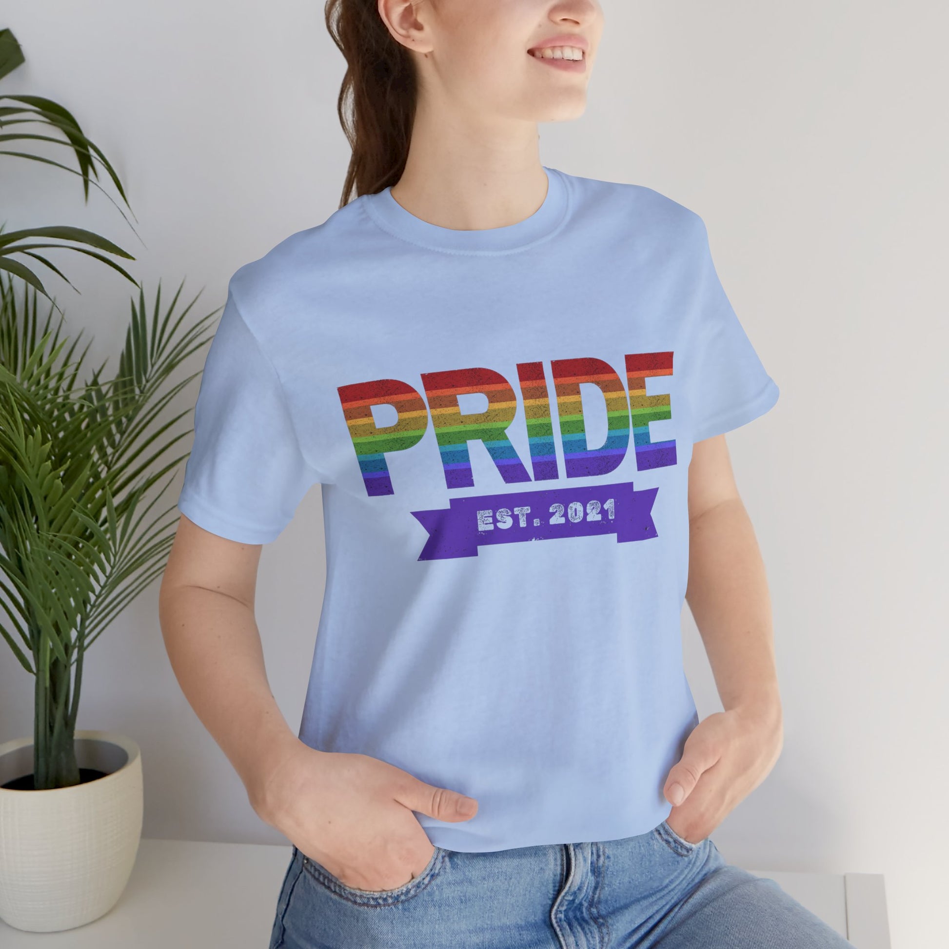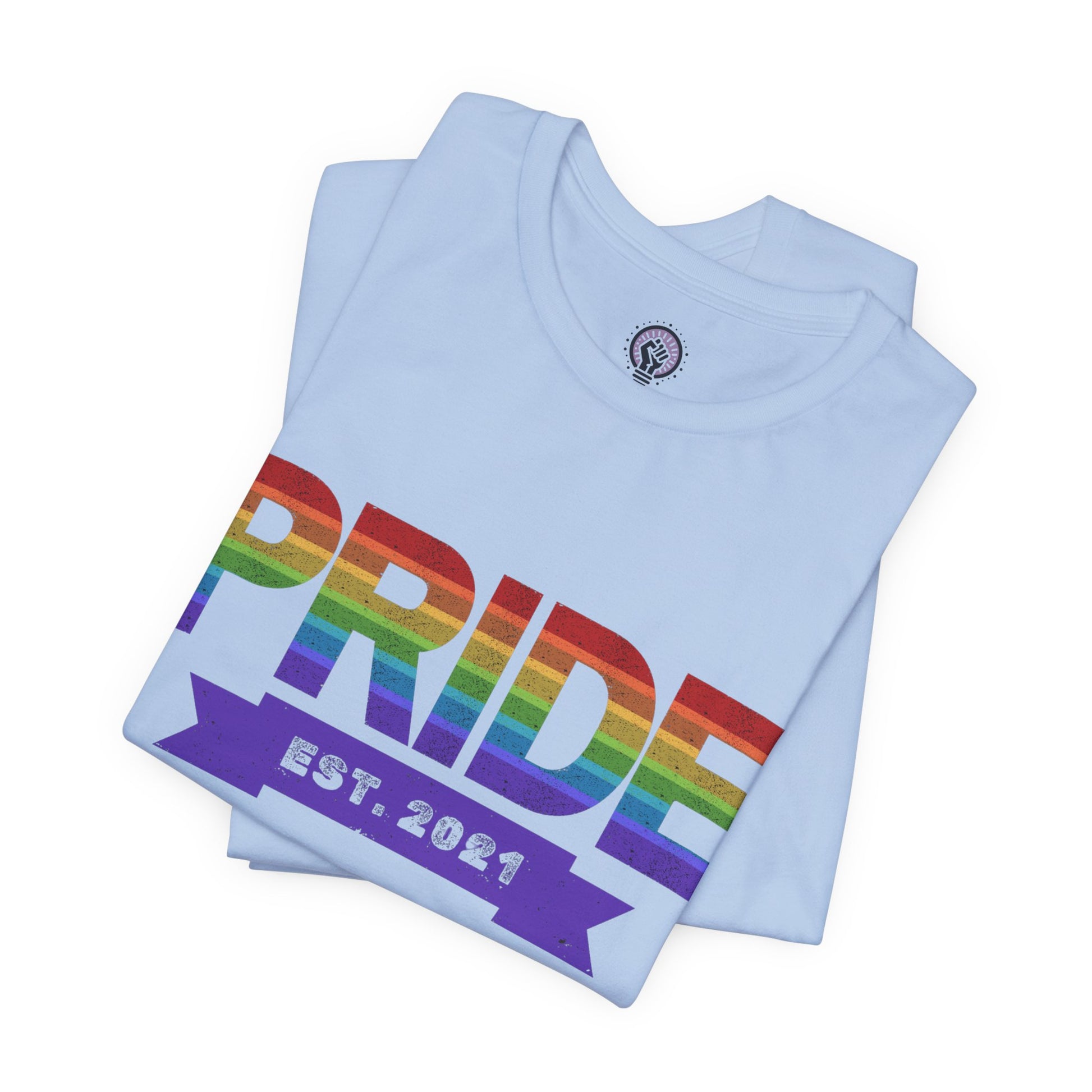 Whether it’s the year you came out, started hormones, got married, chose your name, or just felt truly you—this customizable PRIDE tee honors your timeline, your truth. With bold rainbow block lettering and a vintage-style banner beneath, this design lets you choose the date that means the most to you or someone you love. Available in three flexible formats: full year, full date, or month and year.