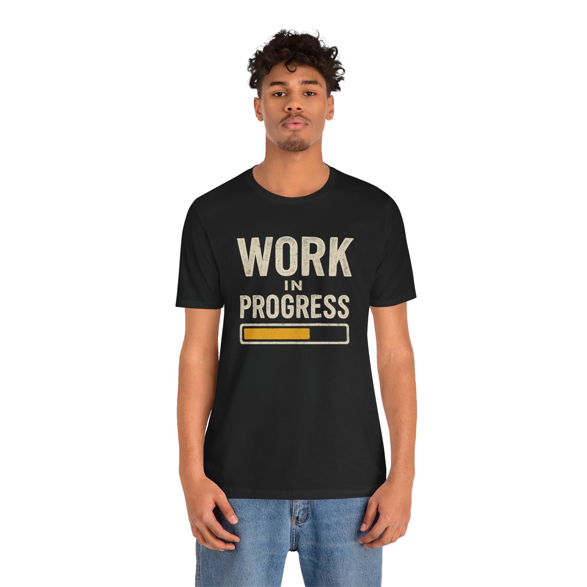 Introducing the perfect Unisex Jersey Short Sleeve Tee for those who embrace the journey of growth and self-improvement. This shirt features a playful "Work in Progress" graphic that inspires motivation and perseverance. Made from 100% Airlume combed and ring-spun cotton, it offers a lightweight, breathable fit ideal for both relaxing at home or stepping out with friends. Its casual yet polished retail fit makes it suitable for various occasions, from casual get-togethers to more semi-formal outings. Perfect for adults who celebrate personal achievements or milestones. This tee makes a thoughtful gift for birthdays, graduations, or any occasion that calls for encouragement and self-reflection. Dress it up with accessories for a night out or style it down for a cozy day in—this shirt is versatile enough to adapt to your lifestyle. Immerse yourself in comfort and style while reminding yourself that it's all part of the journey!